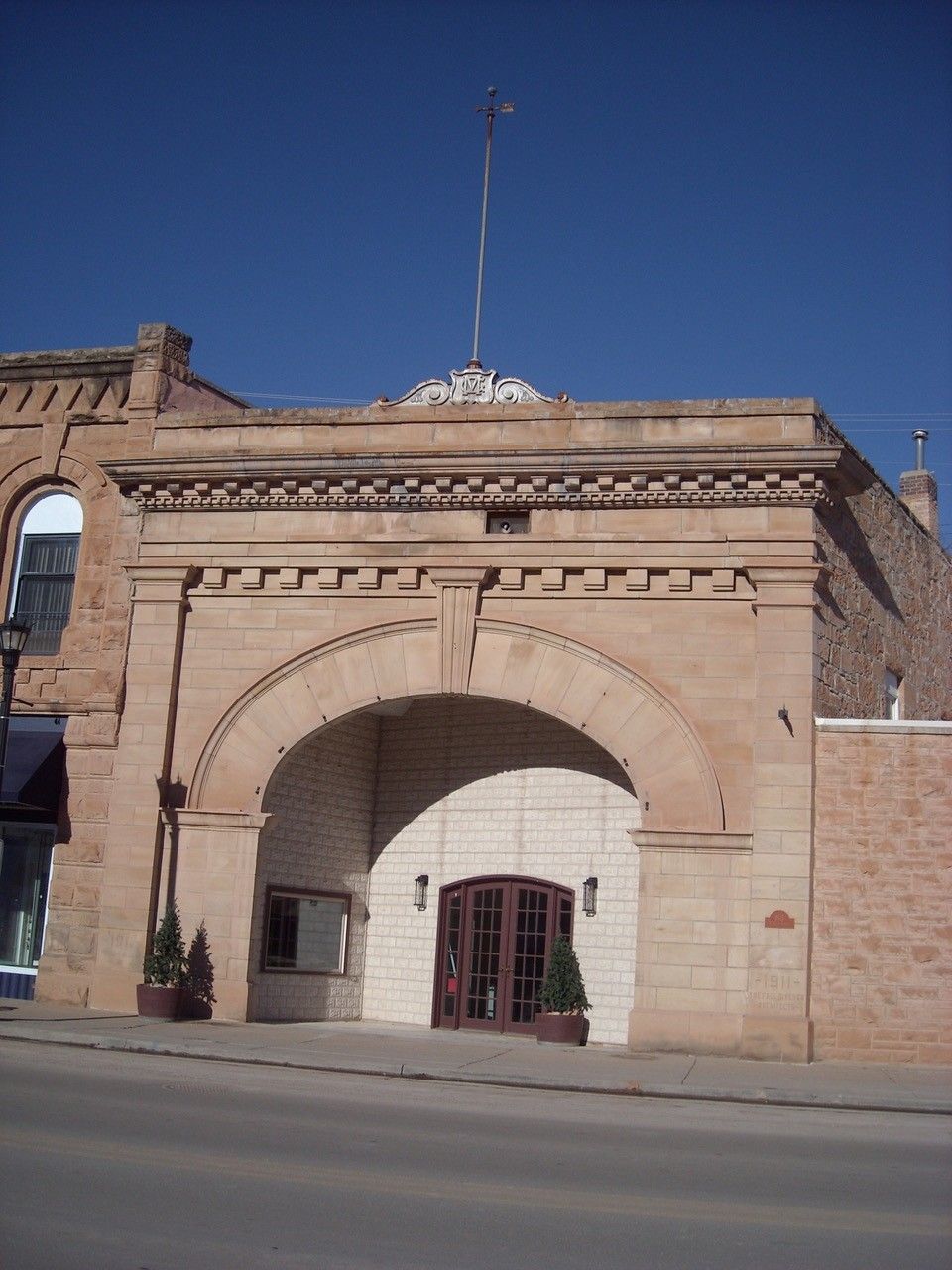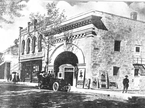 The theater’s design blended classical formality with a commanding round-arched entry. Smooth-faced sandstone, two bands of dentils, and pilasters reinforced its neo-classical style, while the pressed tin cornice reflected new architectural fashions appearing in Hot Springs after 1905.